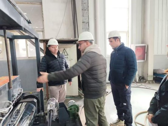 On November 17, 2025, Russian customers visited Qingdao Huashida Machinery Co., Ltd. for the acceptance inspection of the four-roller horizontal reinforced heat-shrinkable tape production line.