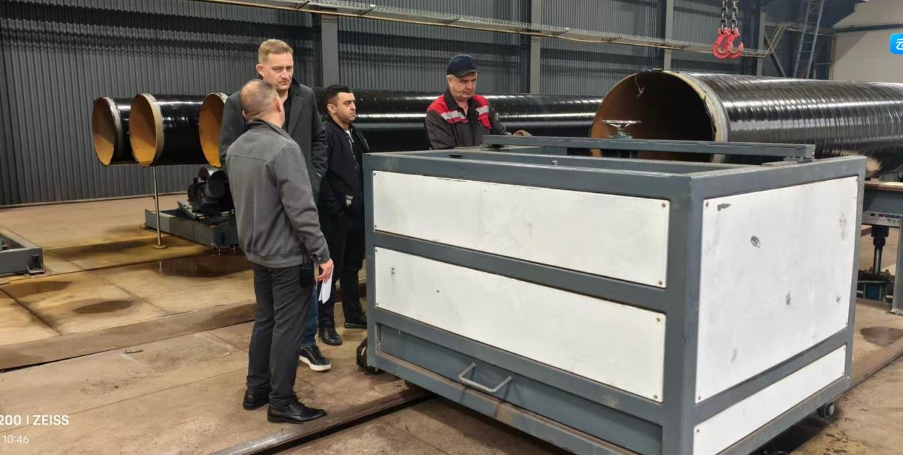 Yesterday, the 1620-type 3PE steel pipe anti-corrosion production line, designed and manufactured by Qingdao Huashida Machinery Co., Ltd. for Russia’s SPV Pipeline Company, was successfully commissioned in Moscow and received high acclaim from the client. Both management and frontline personnel at SPV expressed full satisfaction with the production line’s technical process, operational efficiency, and overall performance.